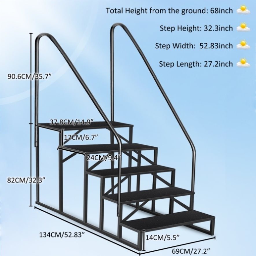 The 660-pound weight-bearing iron steps must be a good choice for you! Equipped with a handrail that can be mounted on either side of the steps for safer use. Multi-purpose step bench ladder with handrail helps RVs, travel trailers, hot tubs, warehouses, log cabins, and other places where you need to reach high items and need to go up and down.
