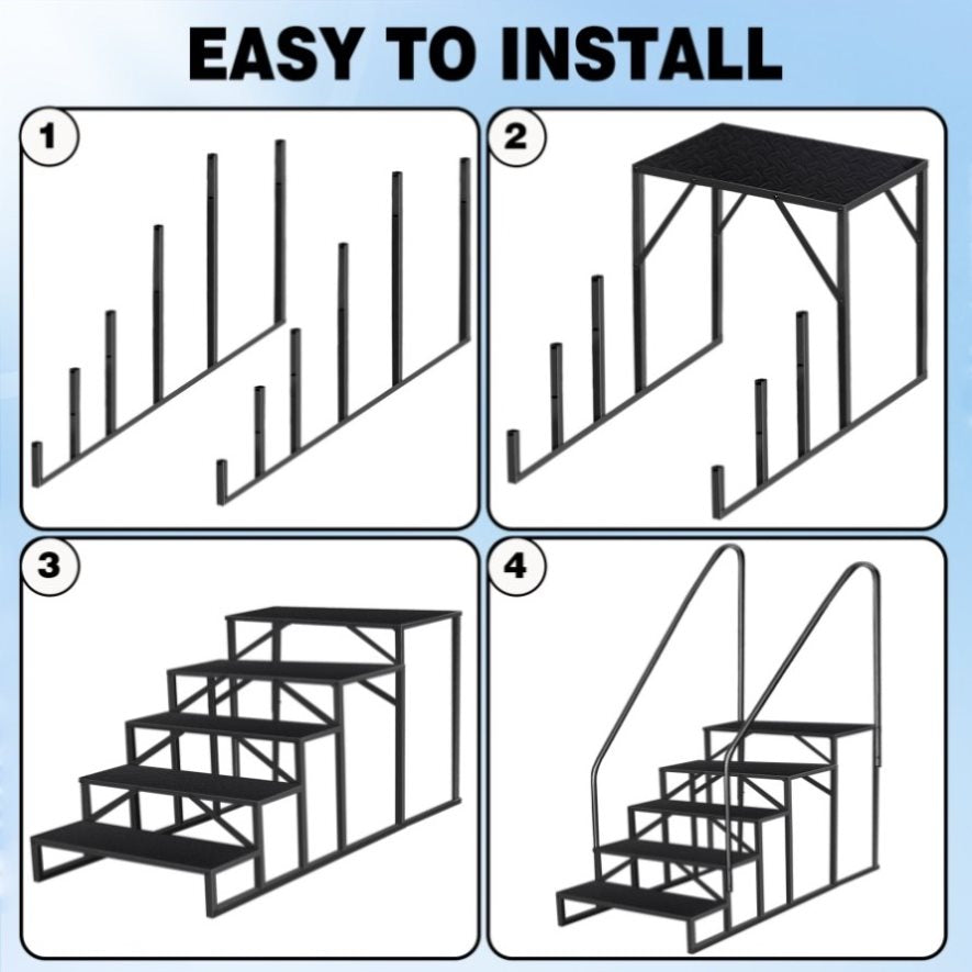 【Easy to Install Portable Stairs】It is easy to install mobile home steps, without any special tools or equipment. The package includes the necessary wrenches and screws, and porch steps accessories. Please note that the screws must be tightened with your RV steps with handrail so that the load-bearing capacity of the ladder is as expected.