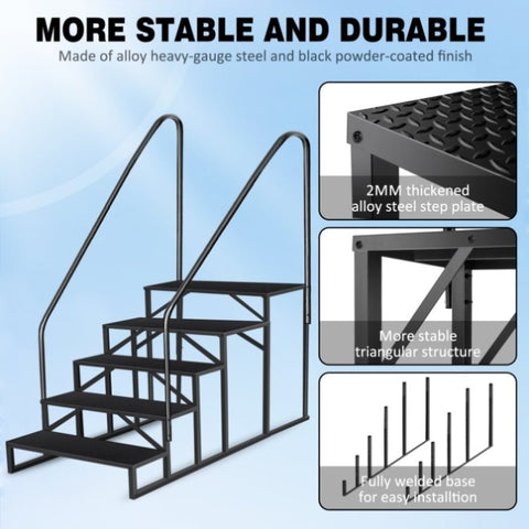 5 Step Ladder with Handrail, Swimming Pool Ladder Above Ground, 660 lb Load Capacity RV Steps with 01422425