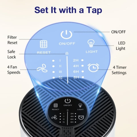 Compact, Convenient & Energy-Smart: With a space-saving design (150150200mm) and lightweight build (695g net, 865g gross), it fits perfectly in bedrooms, offices, or studies. Use the 2/4/6/8-hour timer to match your schedule, power it easily with a 5V, 1A adapter, and enjoy hassle-free maintenance with a 1440h (±10%) filter lifespan – simple, efficient, and energy-friendly.