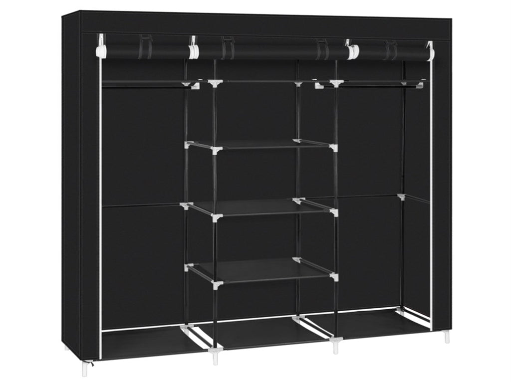 69" Portable Clothes Closet Non-Woven Fabric Wardrobe Double Rod Storage Organizer Black 23382400
