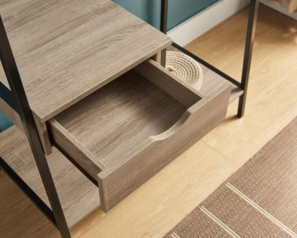 Our Clothes Rack has a slim profile making it small space friendly and highly functional for compact spaces. Just the right size for your entryway or your bedroom, simple in design, but providing plenty of storage capabilities. Open shelves above and below are perfect for grabbing your bags or shoes. The metal rod can hang up to 30lbs evenly distributed. A small single drawer on metal glides is perfect for storing smaller and personal items out of sight.