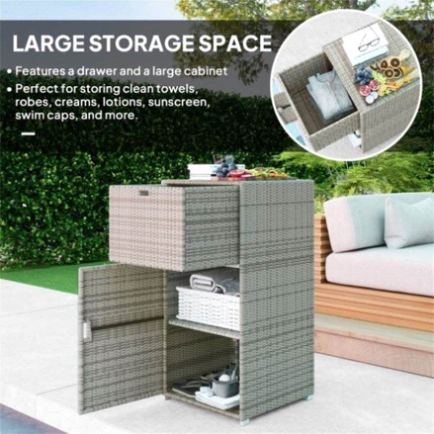 - - Features a drawer and a large magnet-sealed cabinet for organized outdoor storage
