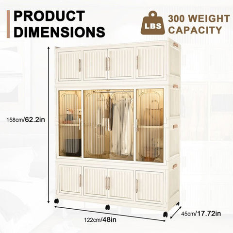 【SAFE MATERIAL】Quality you can trust! Our heavy-duty closet wardrobe is made of high-quality PP and ABS materials, guaranteeing durability and reliability. It is more reliable than fabric closets and more cost-effective than wooden ones. Each compartment can hold up to 50 lbs, with the top supporting up to 145 lbs.