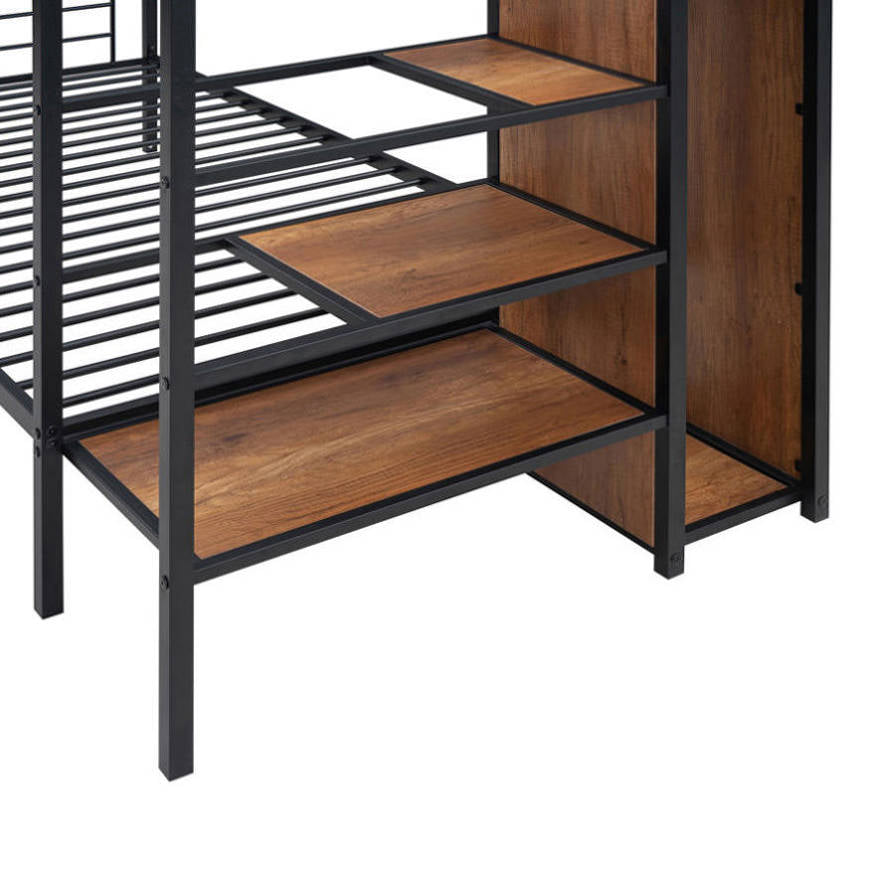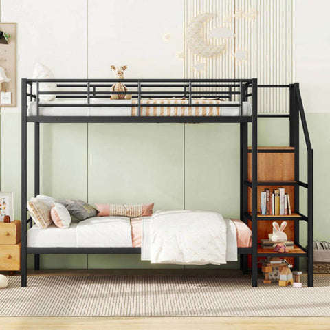 Twin Over Twin Metal Bunk Bed with Lateral Storage Ladder and Wardrobe, Black MF315578AAB