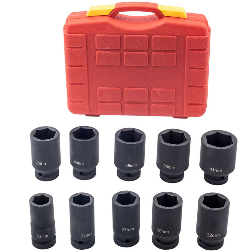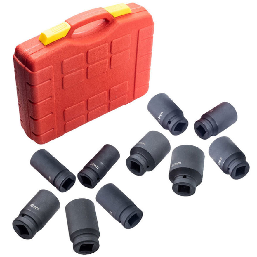 Fit For 10PCS 3/4Inch Drive Deep Impact Socket Set Metric 22-41mm 6-Point Kit With Case 02177382