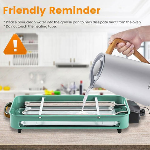 - * Please pour clean water into the grease pan to help dissipate heat from the oven.