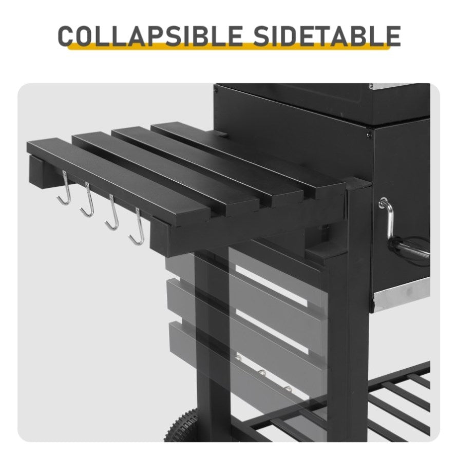 4. Foldable Side Tables & Storage Shelf: Two side tables fold down for space-saving storage, while the bottom shelf provides extra room for charcoal, grilling tools, and accessories.