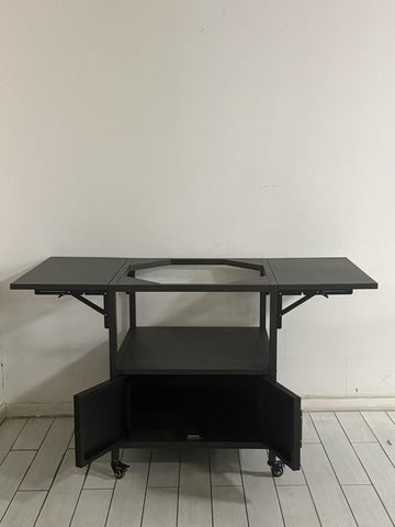 Outdoor Grill Table for Big Green Egg Style BBQ, Metal Grill Cart 2 Folding Panels, Compatible W3190P305785