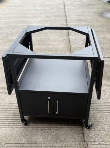 DOUBLE-FOLDING PANEL DESIGN — Our big green egg table has two high-quality foldable panels for easy storage. The panel material is made of high-quality materials, so there is no need to worry about the load-bearing issue. When unfolded, you can place various grilling ingredients, tools, etc., to ensure that everything you need is organized and ready to use