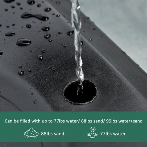 - - Bottom base can be filled with 77 lbs of water, 88 lbs of sand, or maximum 99 lbs of water and sand for added stability