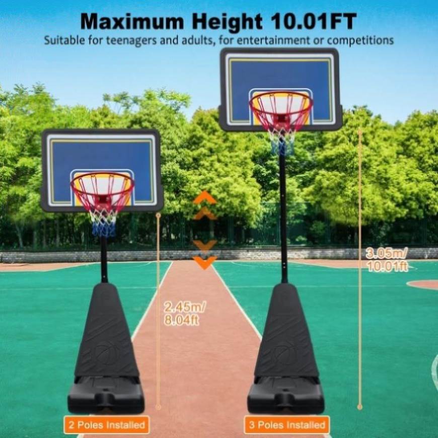 • Height-adjustable basketball hoop: The height of the basketball hoop can be adjusted from 8.04 ft to 10.01 ft, suitable for teenagers and adults to practice basketball