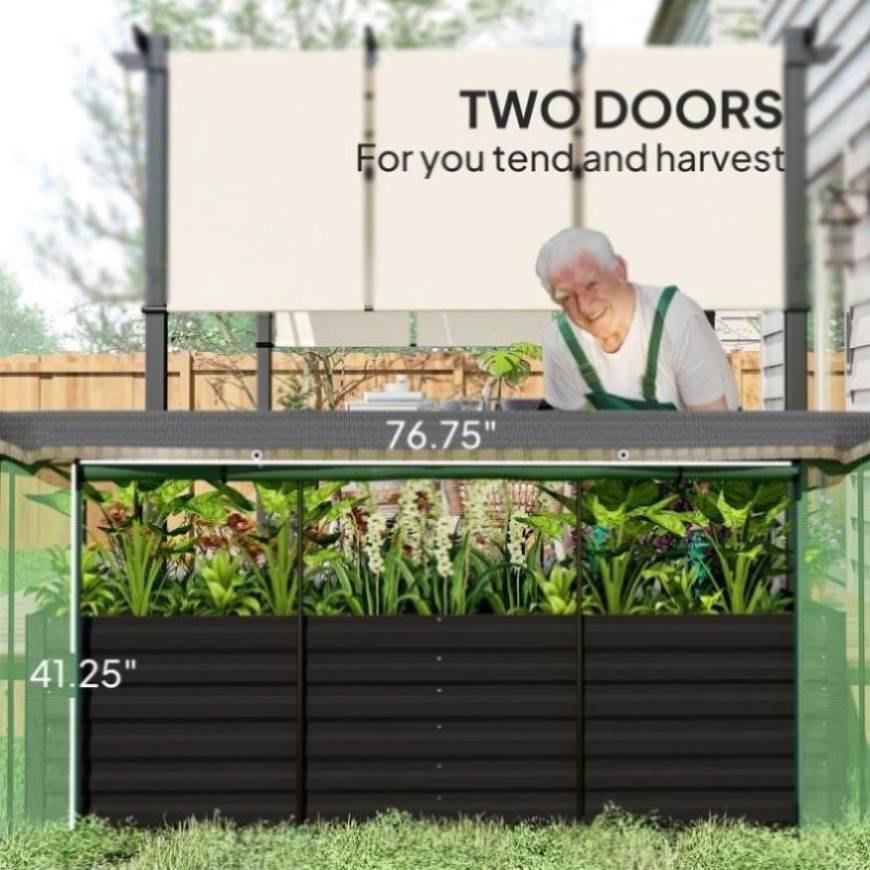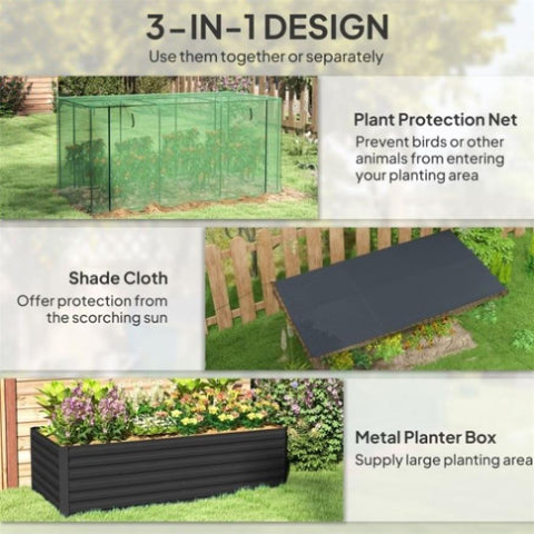 - - Raised planter bed with a plant protector netting and shade cloth