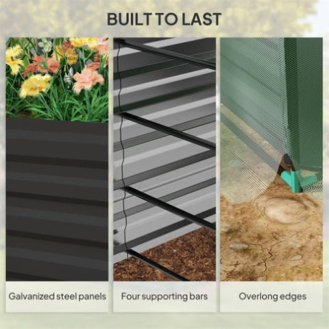 - - Galvanized steel raised garden box with four strengthening stabilizing bars