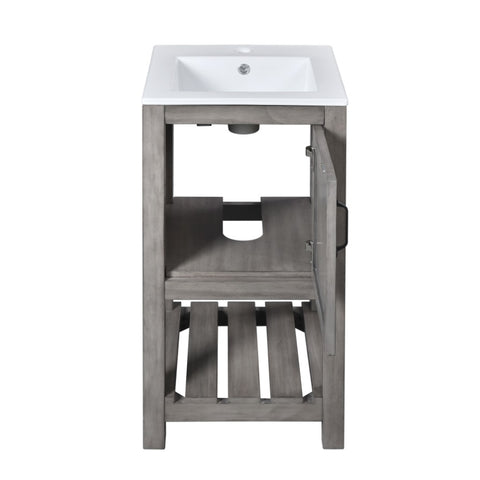16" Bathroom Vanity Sink Combo for Small Space, Bathroom Sink Cabinet with Rectangular Ceramic N710P257402P