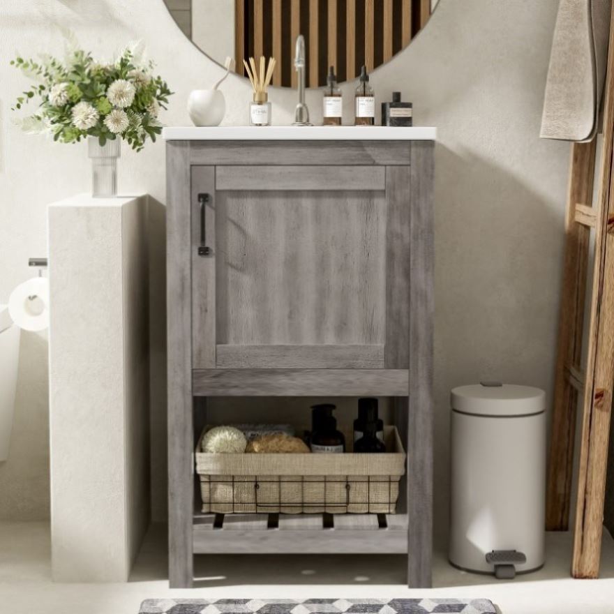 [Perfect for Small Spaces] This bathroom vanity is specially designed for small bathrooms. Its compact size saves space while still being practical. The simple style fits well with modern, Nordic, or rustic decor. The wood-grain finish adds a natural and stylish touch, making your bathroom feel warm and elegant.