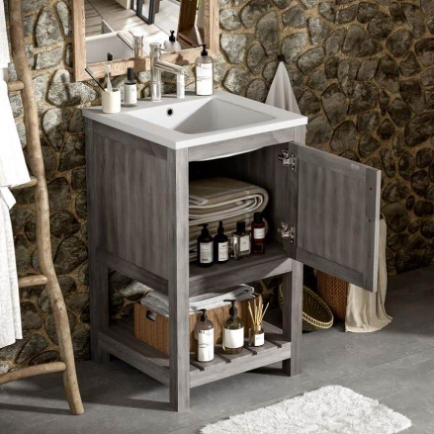 | Material | Cabinet: MDF+ Solid Wood(Pine)/Handle (iron)/ Sink: Ceramic |