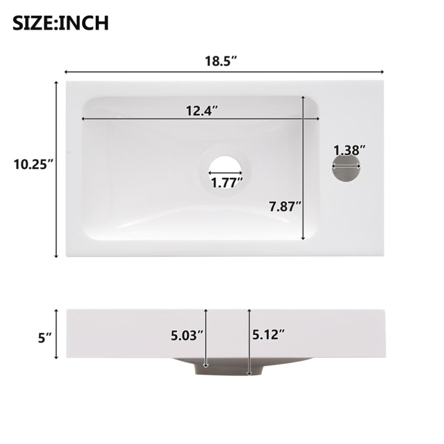 18.5 inch Modern Floating Bathroom Vanity with Resin Basin - Perfect for Small Bathrooms, Left side N729P285506K