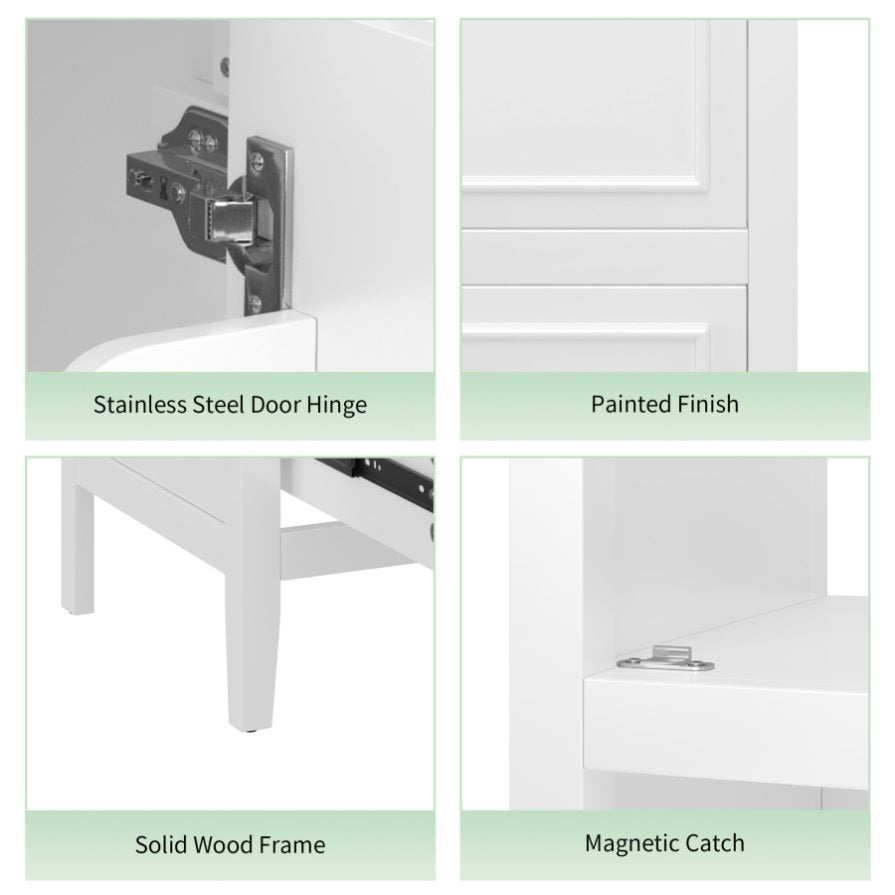 Material - Practicality and durability is important to bathroom facilities, so we use real wood and MDF boards for this product, which not only increases the product stability but also ensures a long-lasting use. Furthermore, the surface of this vanity cabinet is in painted finish. It is water-proof, stain proof and very easy to clean.