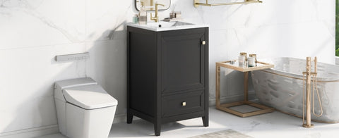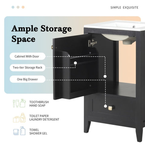 20" Bathroom Vanity with Sink, Bathroom Cabinet with Soft Closing Door, Storage Rack and A Drawer, N725P185452B