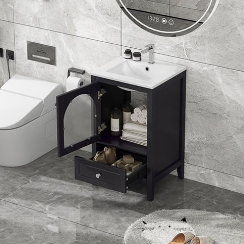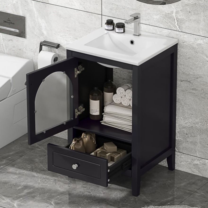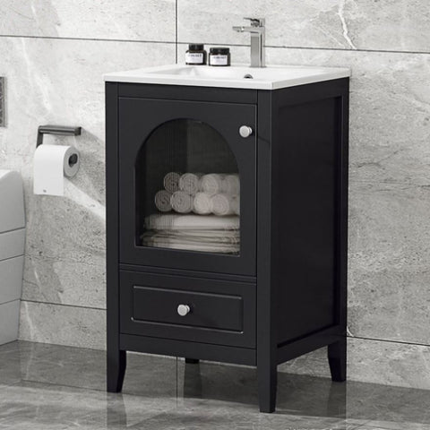 20" Bathroom Vanity with Sink, Bathroom Cabinet with Soft Closing Glass Door, A Drawer, Black N725P185457B