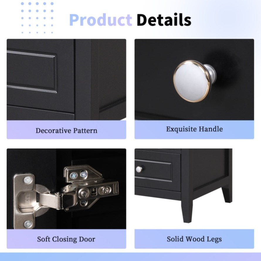 Thoughtful Details: Considering the humid environment in the bathroom, the door hinges and handle are made of stainless steel, which is not easy to rust. In order to keep silent when open and closing the door, the soft closing door is selected for this cabinet. Silver Metal Knobs on the door, creating a modern look that is smooth to the touch and pleasant to use.