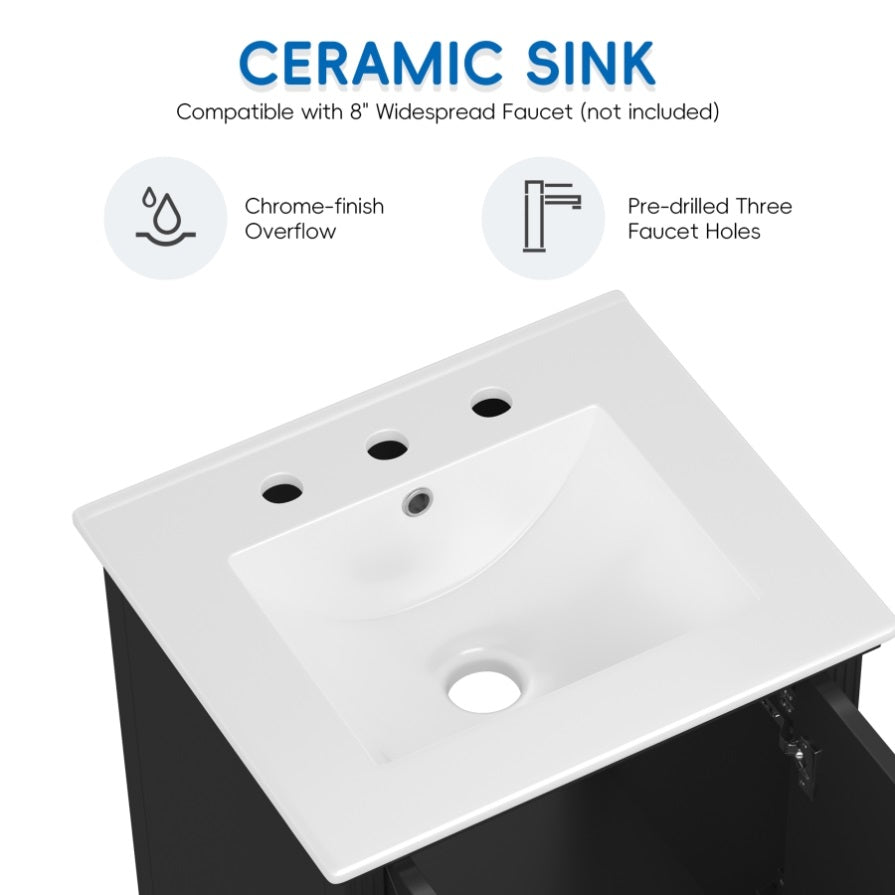 1. 20" Bathroom Vanity with Sink 2. High-quality MDF Board & Ceramic Sink & Painted Finish 3. Cabinet with Doors & One Drawer 4. One Package Details 1. Magnetic Door Stoper 2. Golden Metal Handles 3. Stainless Steel Hinges