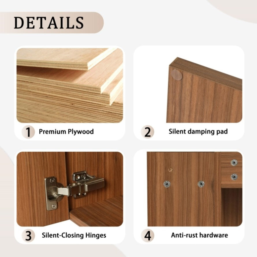The doors with soft-closing hinges can open up and close freely, enjoy silence and enhance your life joy. The material of the door hinges is stainless steel.