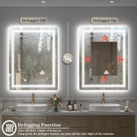 [Unique Design]: Integrated mirror power switch and anti-fog button. The built-in anti-fog function eliminates the need for constant de-misting sprays. Anti-fog mode automatically shuts off after 1 hour for energy efficiency and safety.