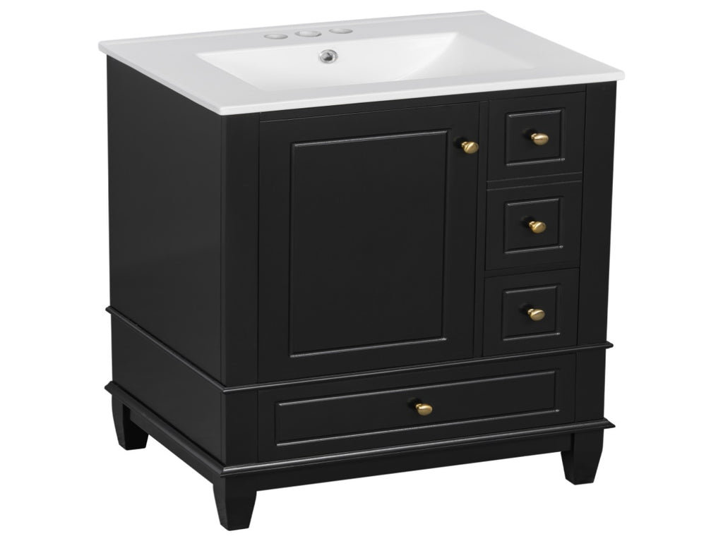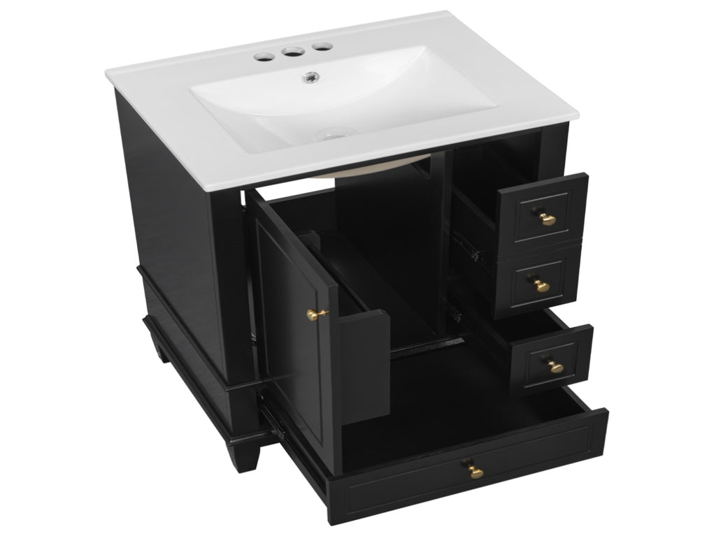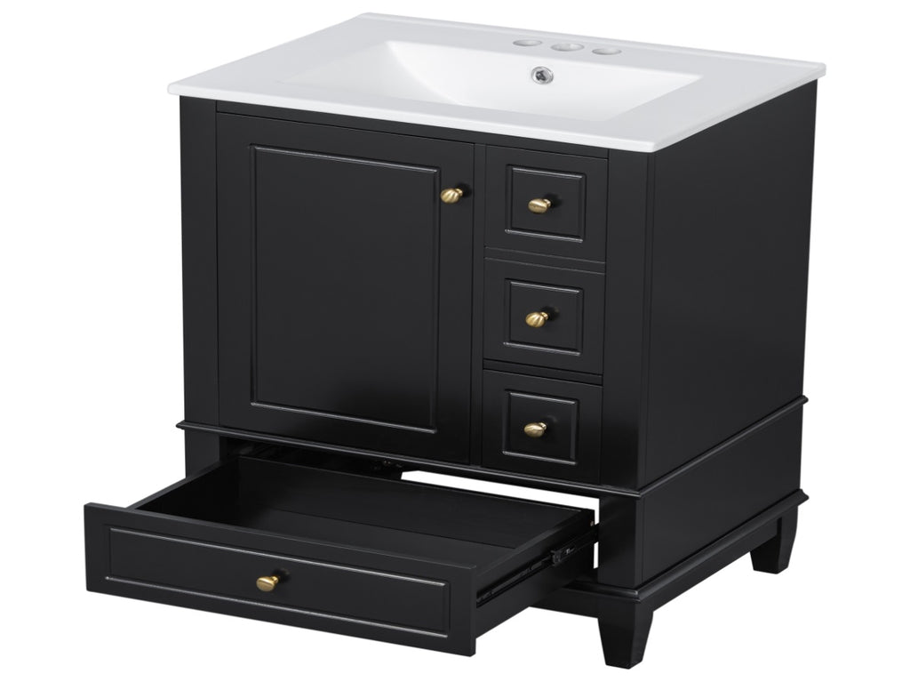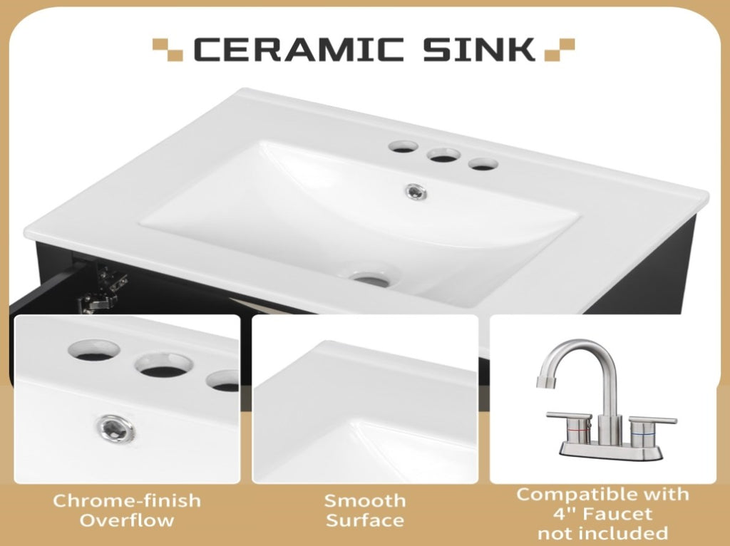 Easy-to-Assemble Structure – The vanity ships flat-packed and requires assembly. All necessary hardware and instructions are included for quick and straightforward setup. (Faucet and drain not included.)