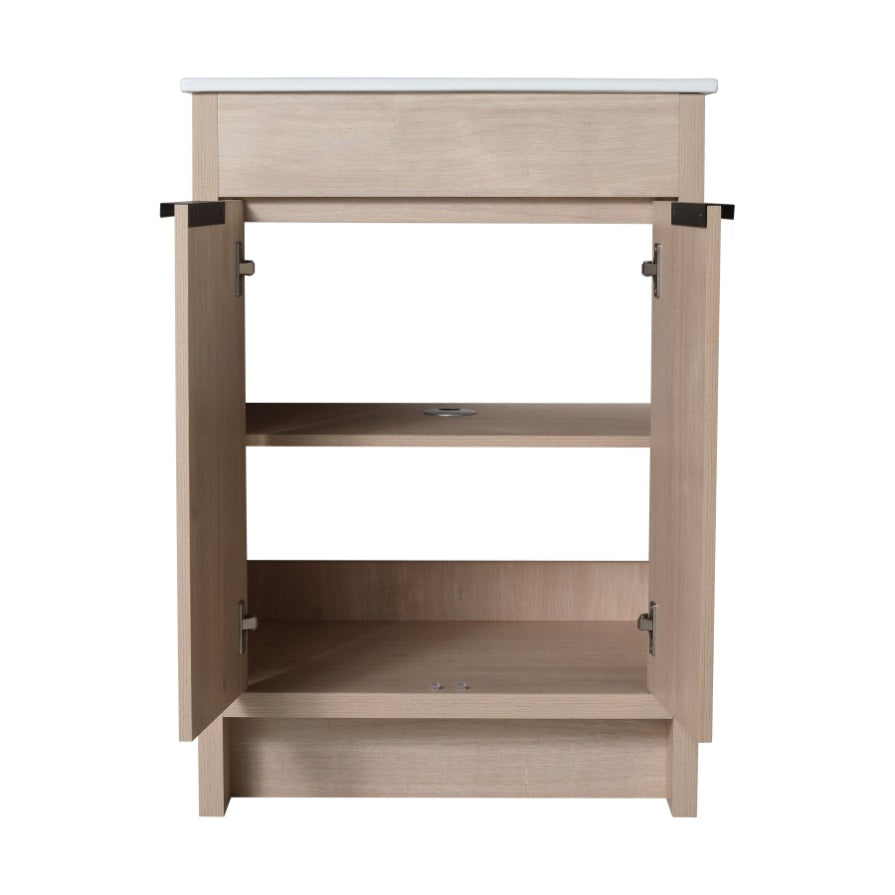 Vanity Base is made of High Quality "Eco-Friendly" Plywood that surface material used "Scratch & Water-Resistant" Melamine, which is designed to not only withstand threats of moisture and humidity but also easy to clean and maintain.