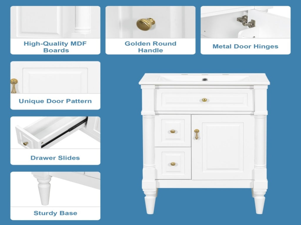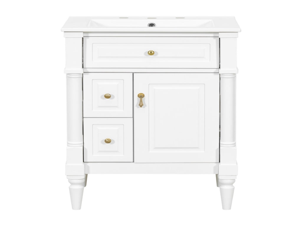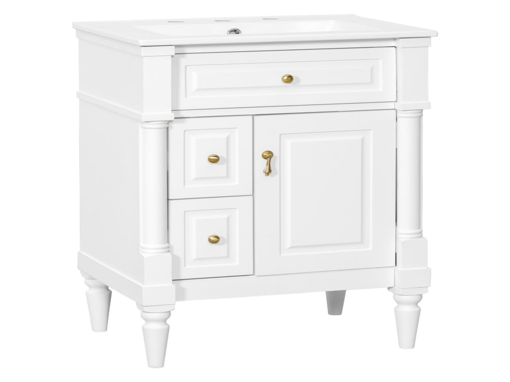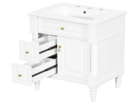 24 Inch Bathroom Vanity with Sink, White Freestanding Bathroom Cabinet with Flip Drawer, Adjustable 73286222