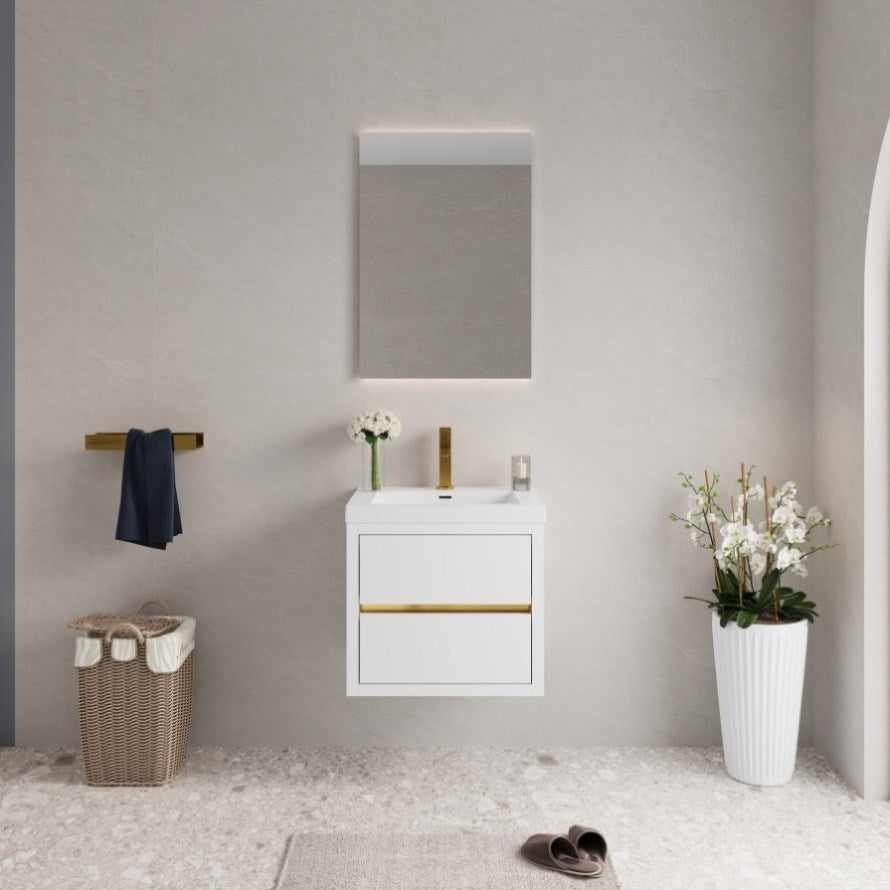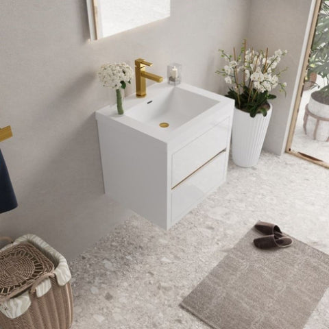 24" Wall-Mounted Bathroom Vanity with Sink, Floating Bathroom Storage Cabinet with Stone Resin W1573P211171