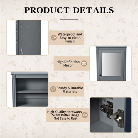 This 24-inch wall-mounted mirror cabinet is an ideal choice for bathroom storage with its simple and modern design and efficient storage function. The cabinet body is made of high-quality MDF material, which is sturdy and durable, and the surface is finely treated to resist moisture and is suitable for the bathroom environment. The mirror part is clear and bright, providing good reflection effect, helping you to wash and take care of daily life, and also adding a touch of modern atmosphere to the bathroom.