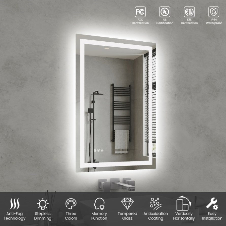 24"*36"LED Bathroom Mirror,Front-Lit and Back-Lit, Stepless Dimmable, 3 Colors CRI90, Brightness T3177P320623