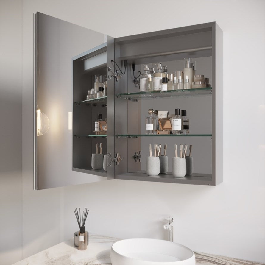 There are three touch switches for this cabinet, which control the main light, the anti-fog function respectively, the brightness adjustment and color temperature adjustment of the lighting.