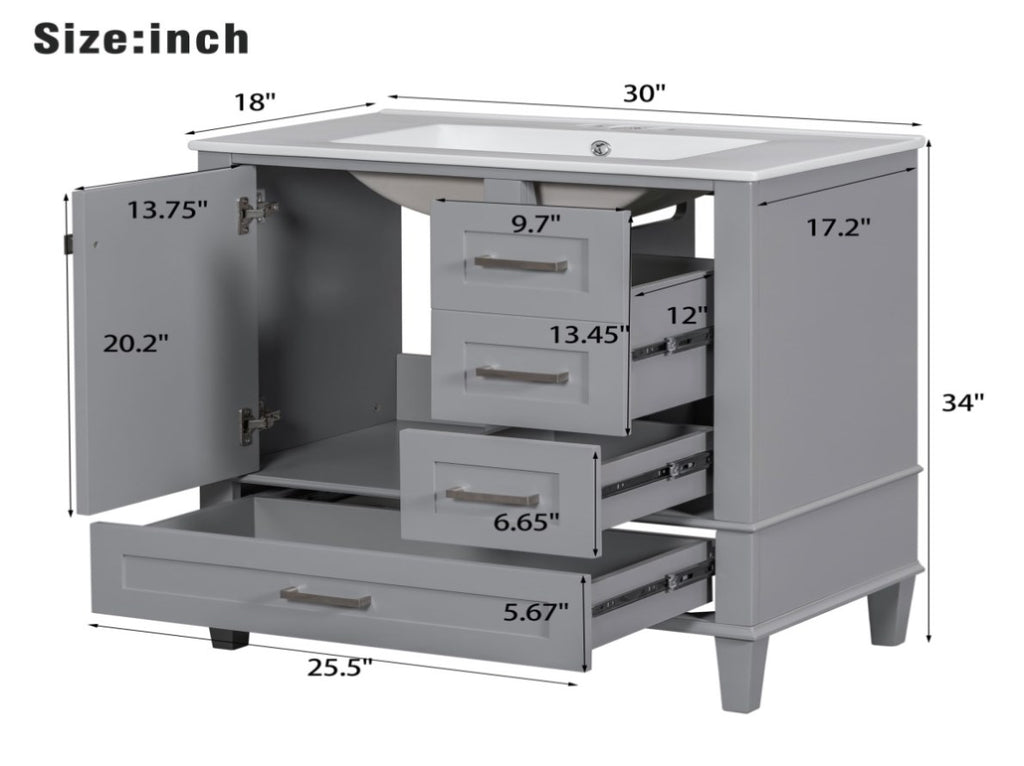 [Bathroom Vanity Size] Overall Dimensions: 30"W x 18.3"D x 34"H.