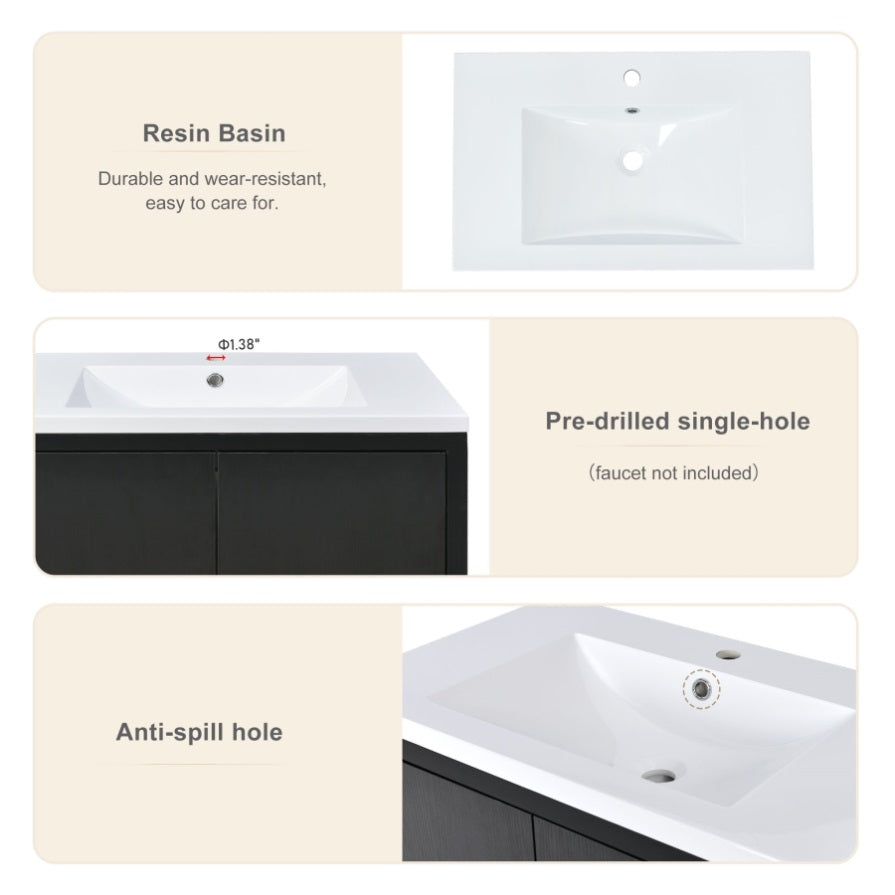 30" Bathroom vanity Set with Sink, Combo Cabinet, Bathroom Storage Cabinet, Solid Wood Frame WF319594AAB