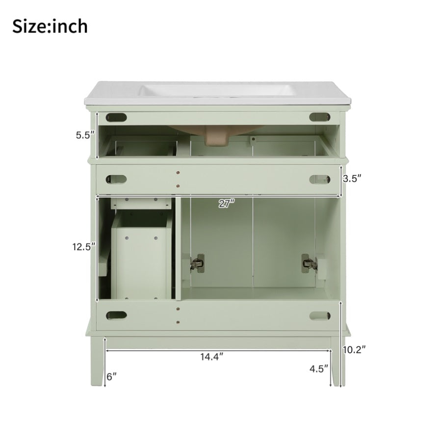 30" Bathroom Vanity with Ceramic Sink, Modern Storage Cabinet