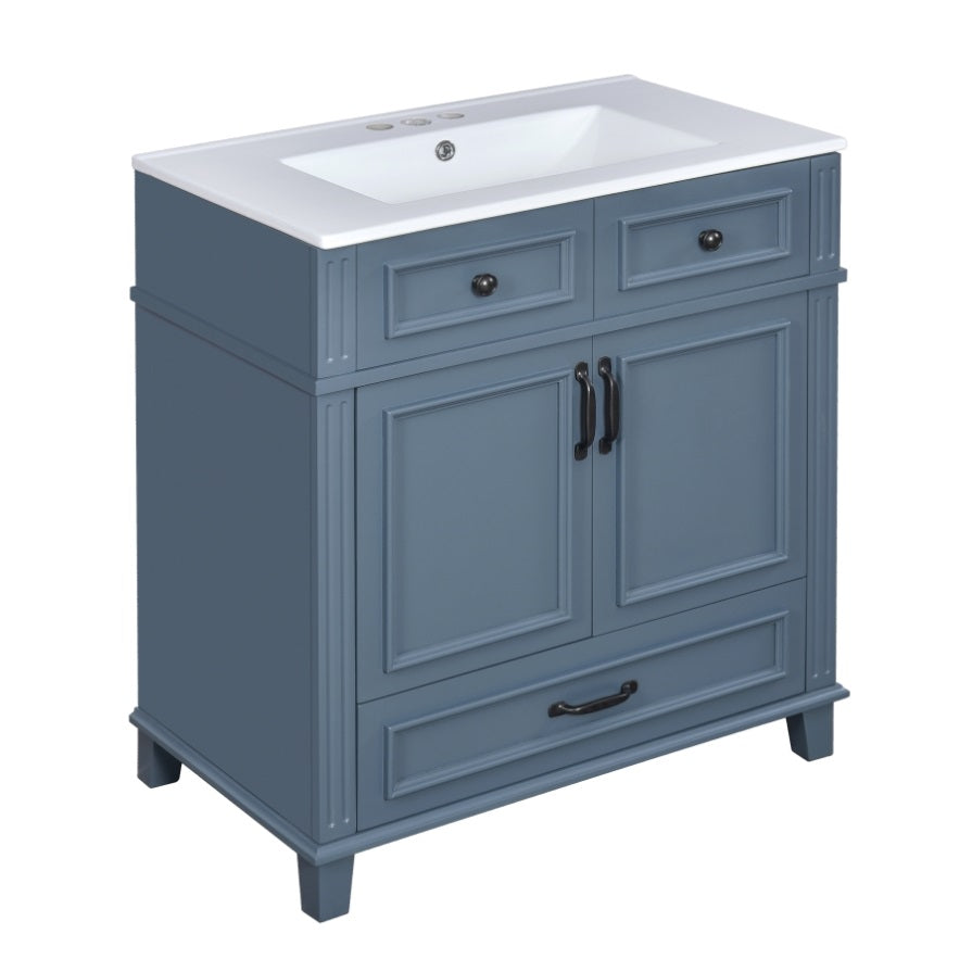 30'' Bathroom Vanity with Ceramic Sink,Solid Wood Frame Bathroom Storage Cabinet with Soft Closing N710P190656C