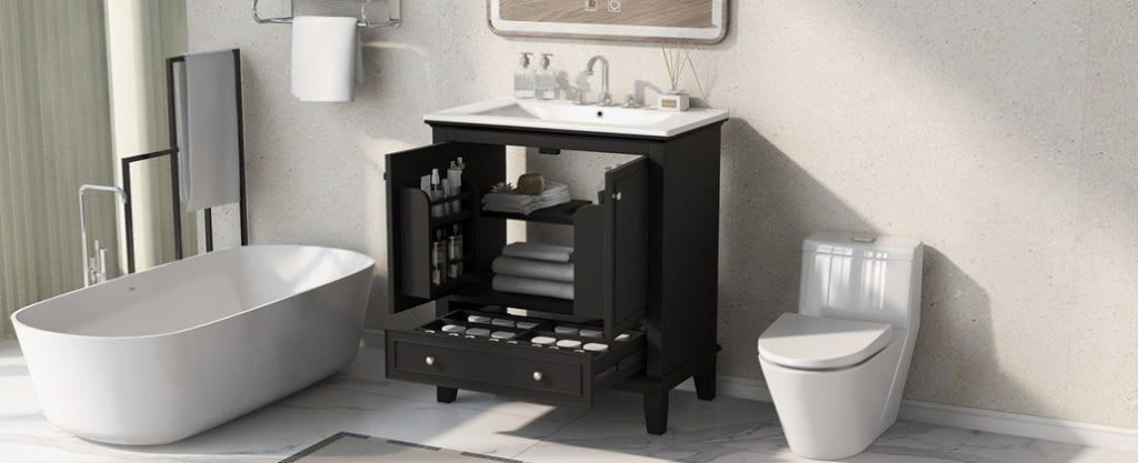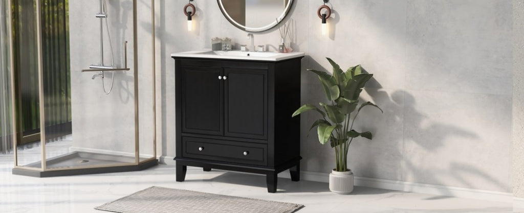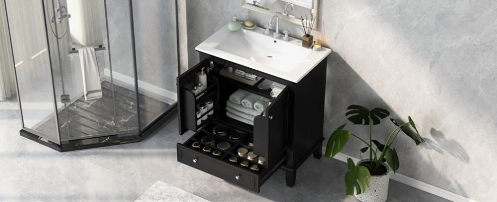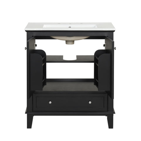 30" Bathroom Vanity with Sink Combo, Multi-functional Bathroom Cabinet with Doors and Drawer, Solid WF322498AAB