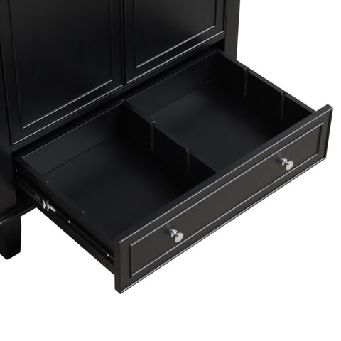 Multi-functional Cabinet and Drawer: The door of this vanity cabinet is designed as functional storage: a rack with two tiers on the each door for you to store makeup and other stuff. Besides, the lower big drawer can be divided into different parts by the section panel. The panel is removable and you can remove it according to your needs.