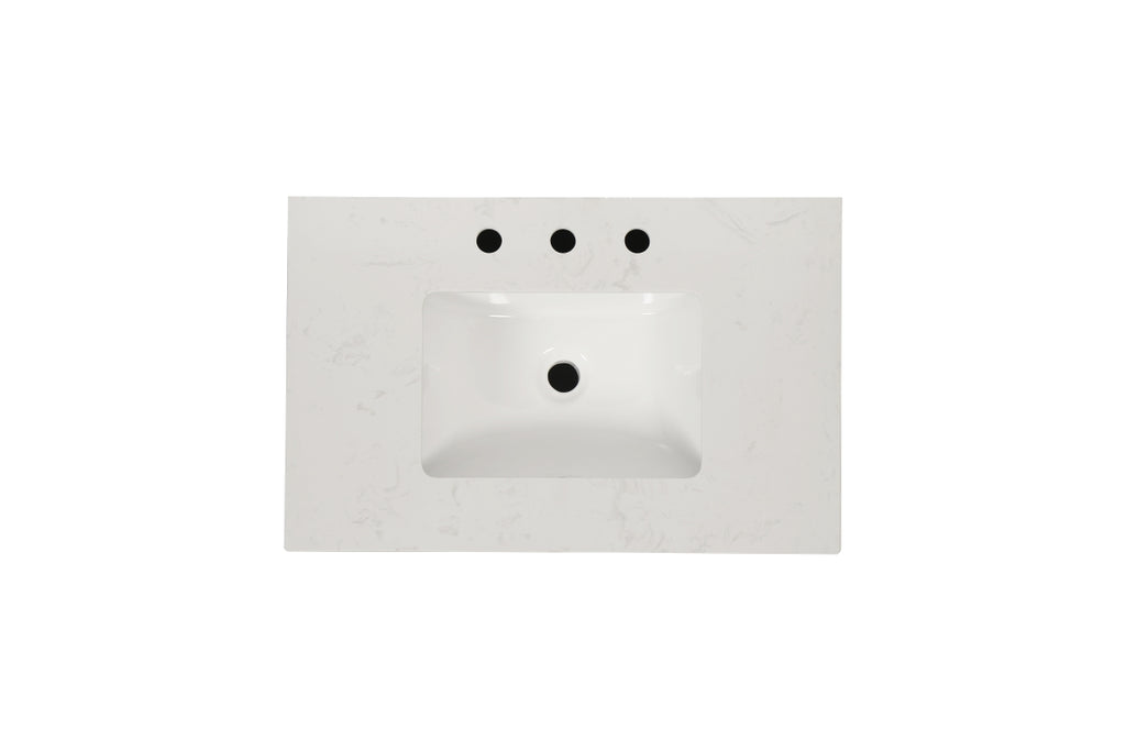CONSTRUCTION: Expertly crafted with a fully assembled solid wood frame, this bathroom organizer guarantees enduring strength and impeccable craftsmanship. The countertop and accompanying backsplash are thoughtfully pre-sealed, alleviating any concerns. Moreover, the unit comes pre-drilled to effortlessly accommodate faucets with 8" spacing.