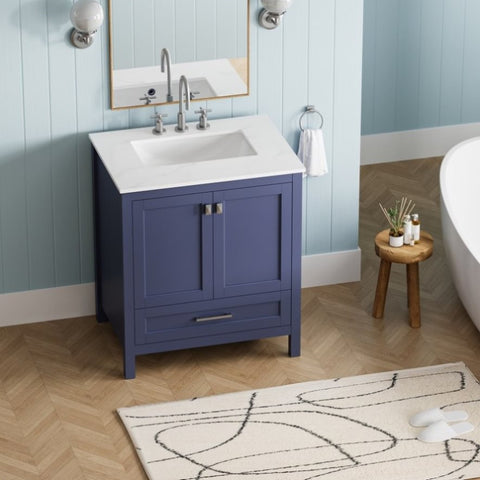 30" Bathroom Vanity with Sink, Fully Assembled Bathroom Sink Cabinet with Marble Countertop, Navy W1573P237849