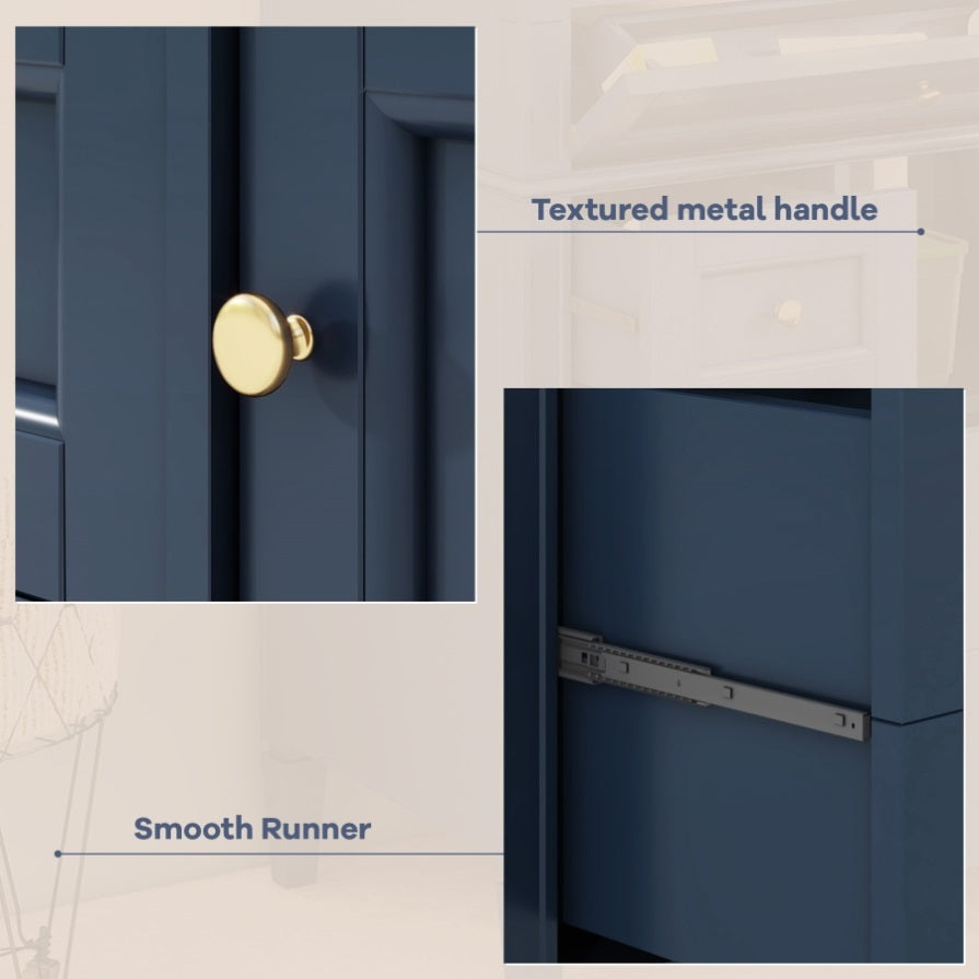 The cabinet design includes 3 drawers and a storage cabinet, providing abundant storage space to help you easily store bath towels, toiletries and other daily necessities. The drawer adopts a silent slide design, which opens and closes smoothly, greatly improving the user experience.