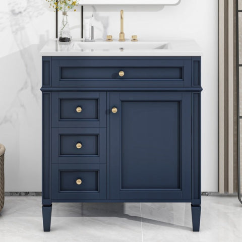30'' Bathroom Vanity with Top Sink, Modern Bathroom Storage Cabinet with 2 Drawers and a Tip-out N710P206904C