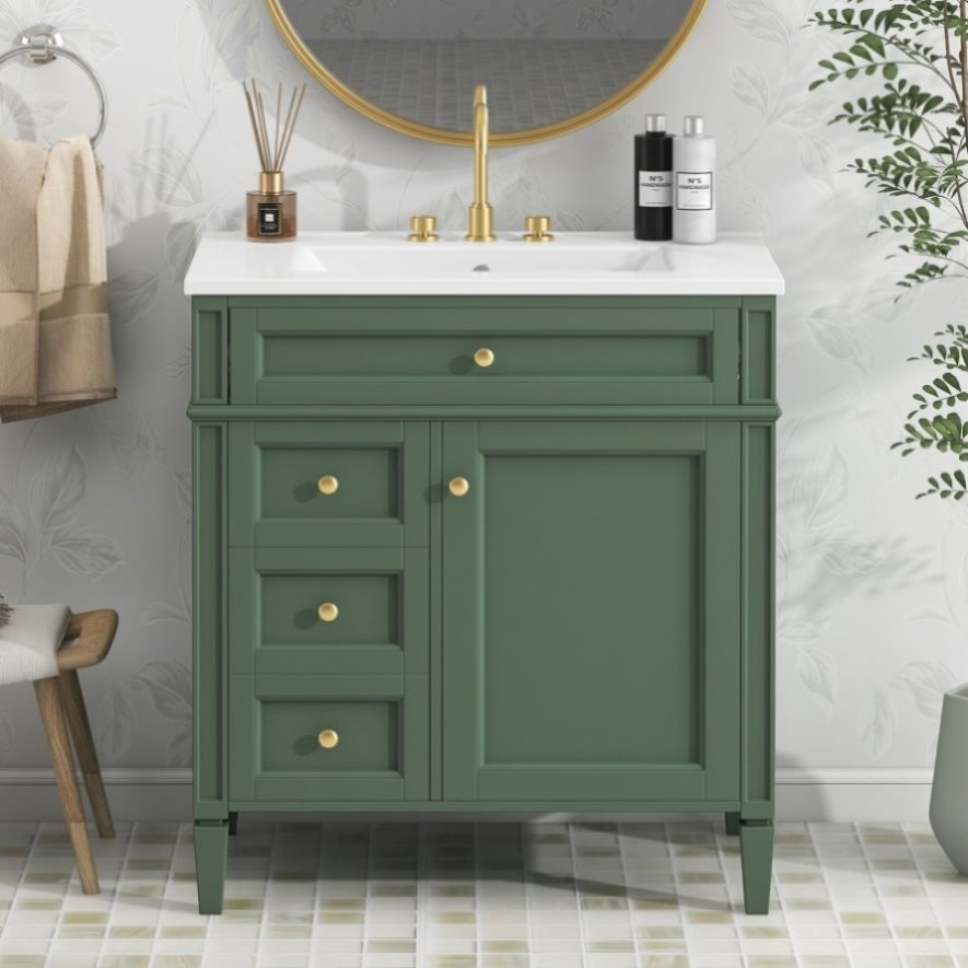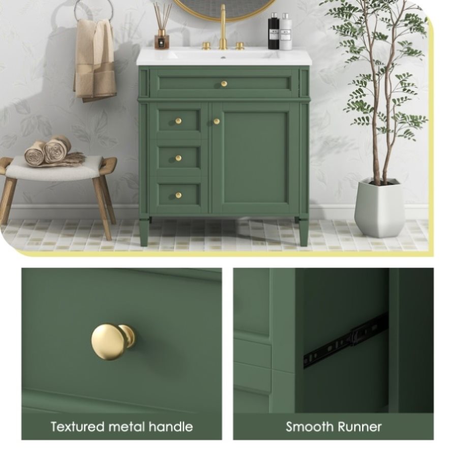 [ Multi-Purpose Cabinet & Concealed Storage ] Are you looking for stylish and functional storage solutions for your bathroom Our bathroom vanity provide ample space for all your toiletries and bathroom essentials. The combination of the cabinet body and the drawer perfectly stores all kinds of bathroom products and keeps the necessities away from water stains and dust. Soft-close doors and drawer fronts feature a water-resistant paint finish for durability.