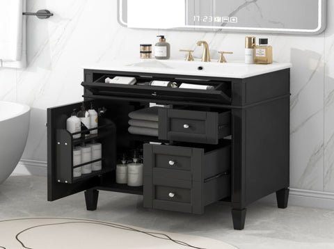 [ Multi-Purpose Cabinet & Concealed Storage ] Are you looking for stylish and functional storage solutions for your bathroom Our bathroom vanity provide ample space for all your toiletries and bathroom essentials. The combination of the cabinet body and the drawer perfectly stores all kinds of bathroom products and keeps the necessities away from water stains and dust. Soft-close doors and drawer fronts feature a water-resistant paint finish for durability.