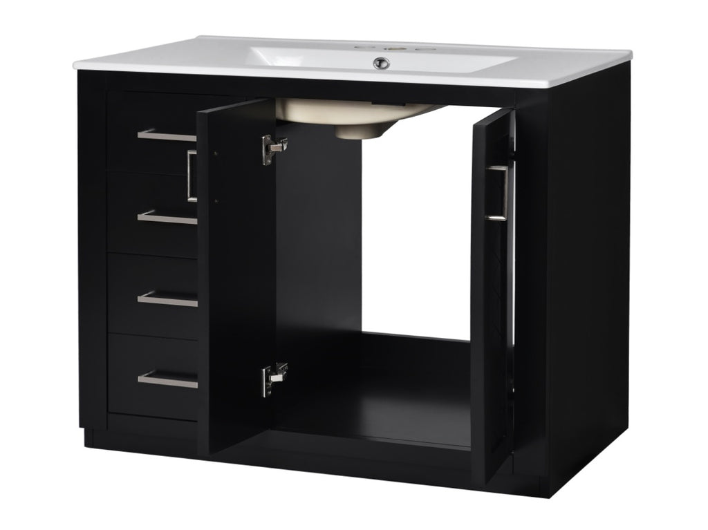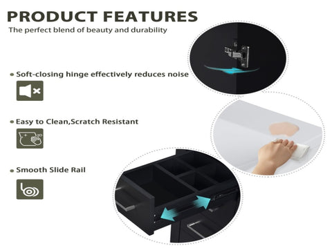 [ Multi-Purpose Cabinet & Concealed Storage ] Are you looking for stylish and functional storage solutions for your bathroom Our bathroom vanity provide ample space for all your toiletries and bathroom essentials. The combination of the cabinet body and the drawer perfectly stores all kinds of bathroom products and keeps the necessities away from water stains and dust. Soft-close doors and drawer fronts feature a water-resistant paint finish for durability.