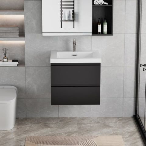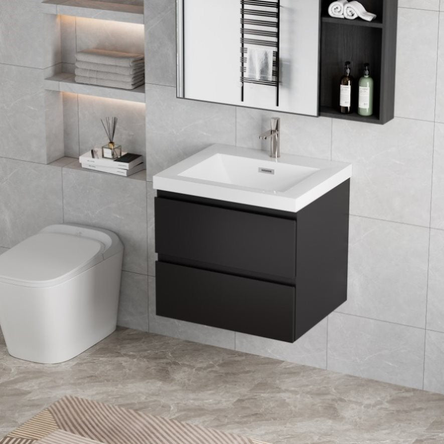 Clean and Functional: Enhance your bathroom with this space-saving, wall-mounted vanity to neatly organize cosmetics and other essentials. Its modern, minimalist design enhances the aesthetics of your space while maximizing functionality.